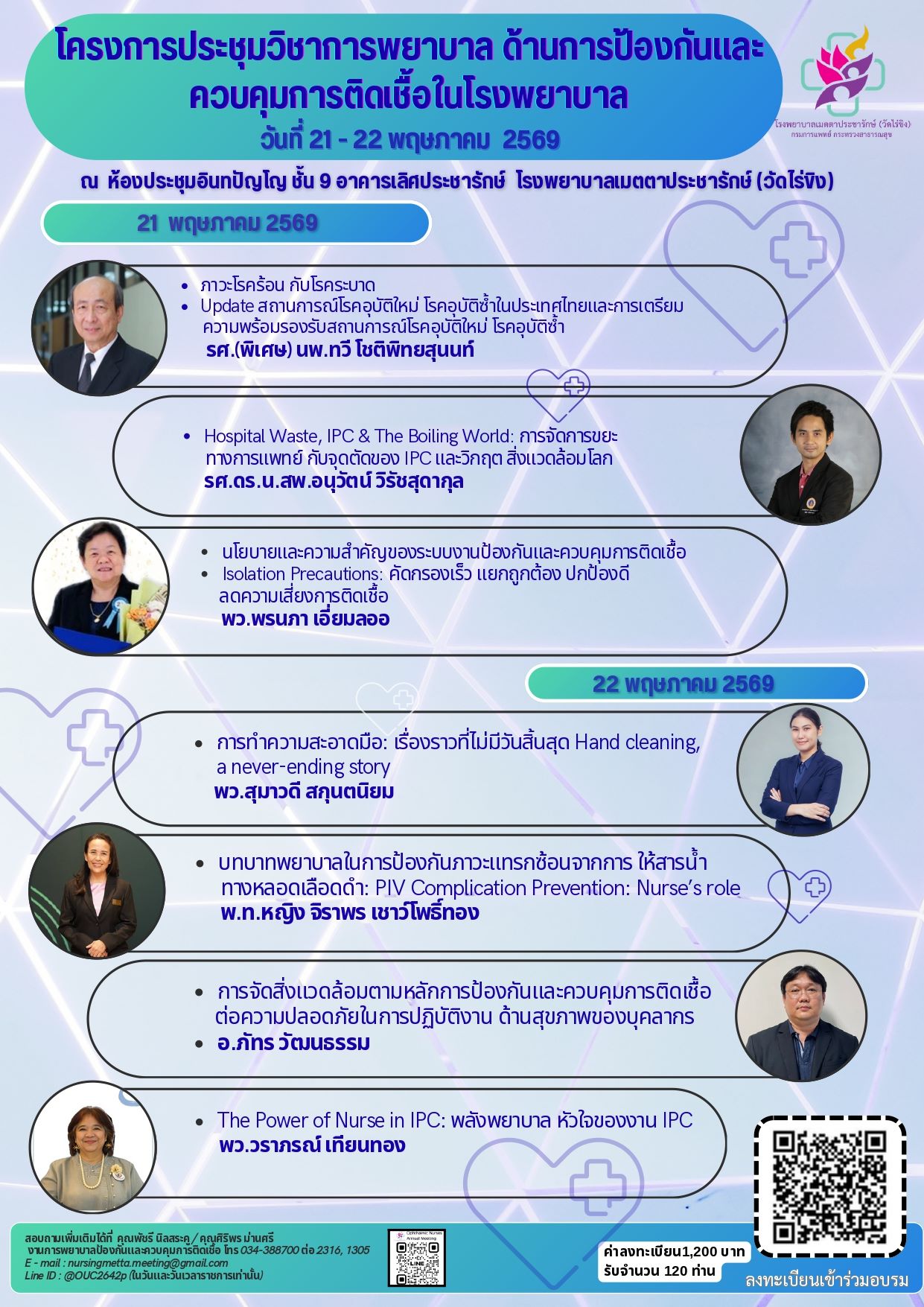 โครงการประชุมวิชาการพยาบาลด้านการป้องกันและควบคุมการติดเชื้อในโรงพยาบาล ครั้งที่ 3 ประจำปี 2569 ระหว่างวันที่ 21-22 พฤษภาคม 2569 ณ โรงพยาบาลเมตตาประชารักษ์ (วัดไร่ขิง)